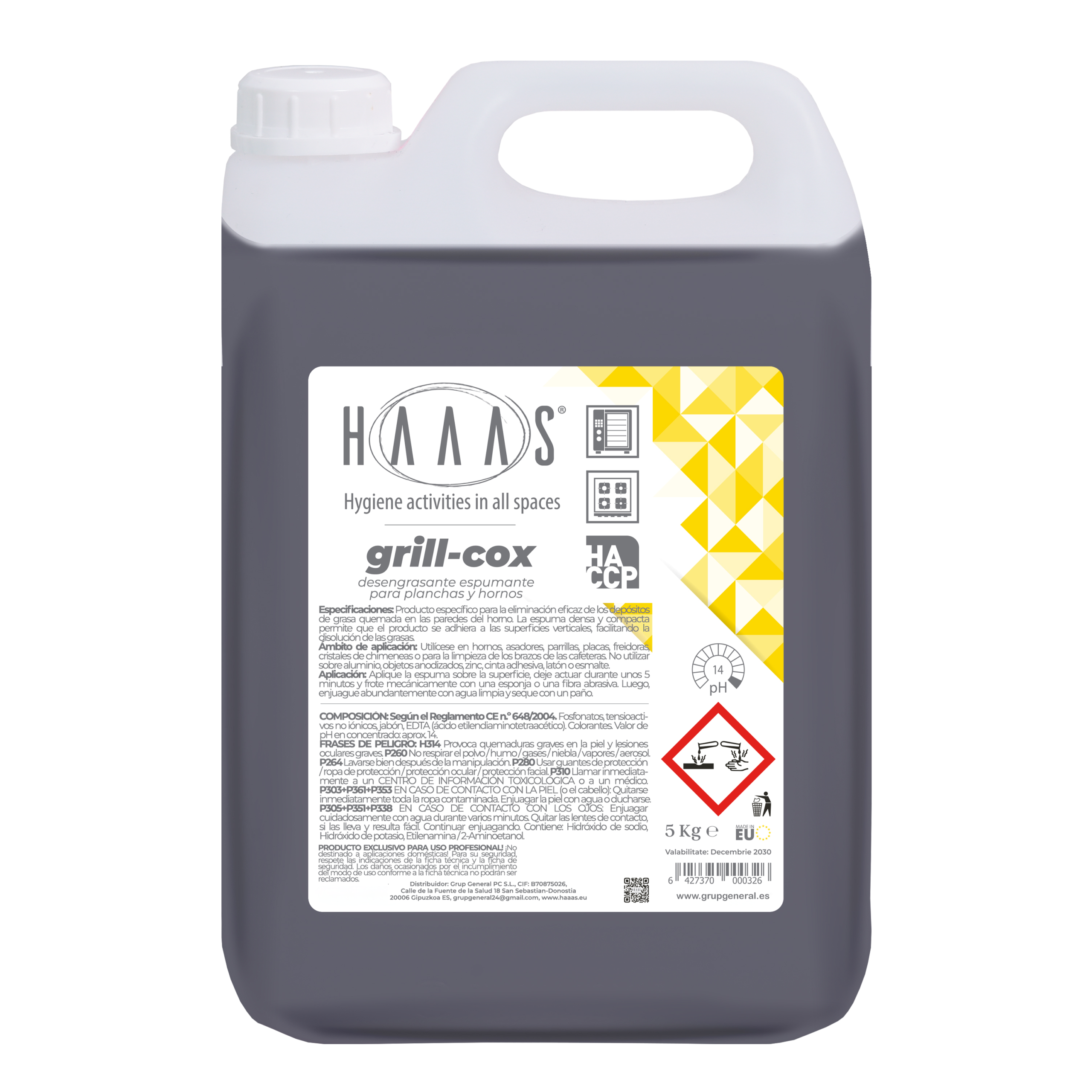 - Apto para superficies con exceso de grasa, como campanas extractoras y filtros, azulejos y porcelanatos, encimeras de acero, rebanadoras, teflón, sillas de plástico, mesas, lonas, caucho, PVC.