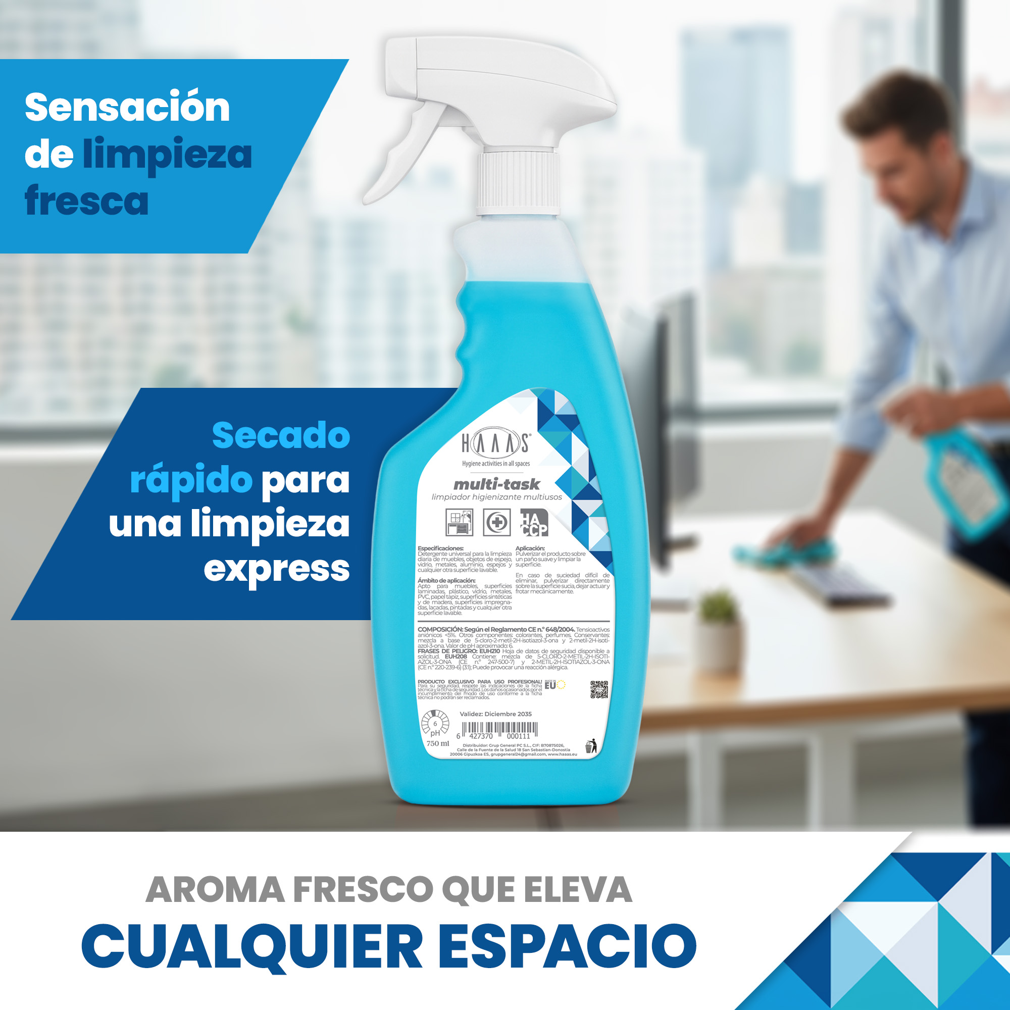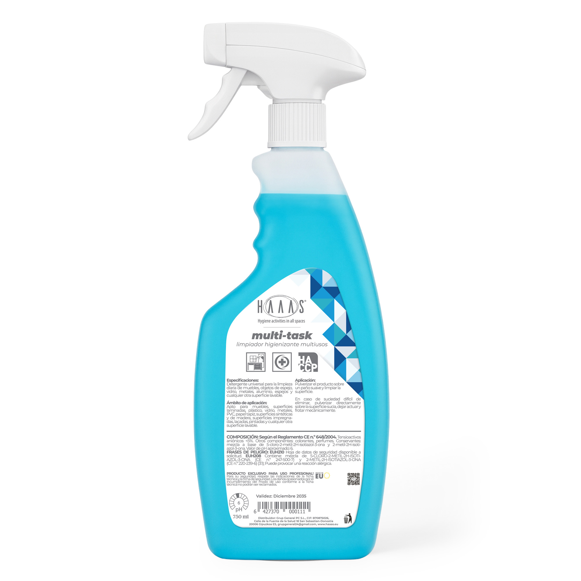 H410 Muy tóxico para los organismos acuáticos, con efectos nocivos duraderos. EUH208 Contiene: Metilcloroisotiazolinona, metilisotiazolinona. Puede provocar una reacción alérgica.